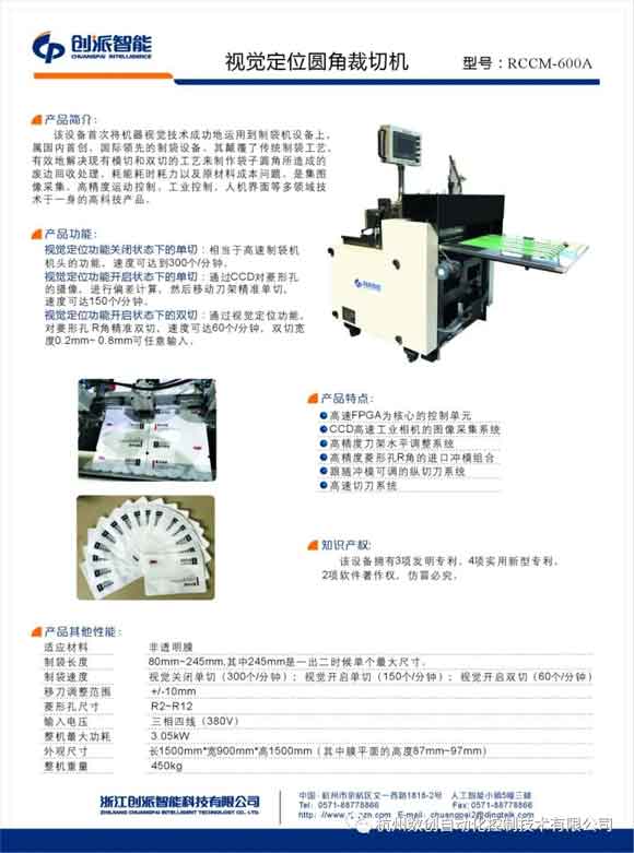 你还在为“单切不能实现订单;切双刀圆角不完美、切下废品无处不在、客户不满意;模切又更揪心、废边多、袋子不容易打开、刀模易损、速度效率低下”的事烦恼的话,就来看看杭州数创这款(CCD视觉圆角机)优势:CCD摄像、偏差计算、切单刀,实现完美的圆角,速度优于每分钟150次,是一款视觉定位智能的圆角裁切机,实现制袋机上打圆角智能化的升级产品,值得你拥有!