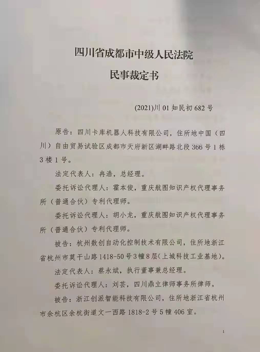 原告:四川卡库机器人科技有限公司,住所地中国(四川)自由贸易实验区成都市天府新区湖畔路北段366号1栋3楼1号。